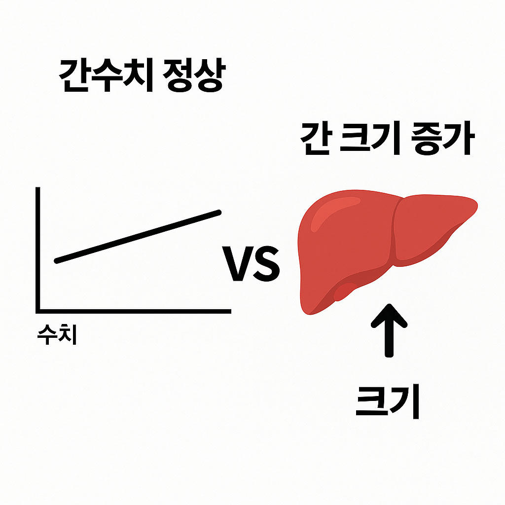 바로 “간수치는 간의 ‘기능 변화’를 보여주는 지표이고, 간의 크기 변화는 ‘구조 변화’를 반영한다는 점”입니다.