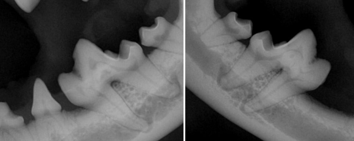 최근 서울 강북구 쌍문동 동물병원 비아츠에는 입가 염증이 반복되는 말티푸 아이가 내원했고, 정밀 방사선 촬영 결과 양측 상악 제1대구치(M1)에서 치내치가 확인되었습니다.