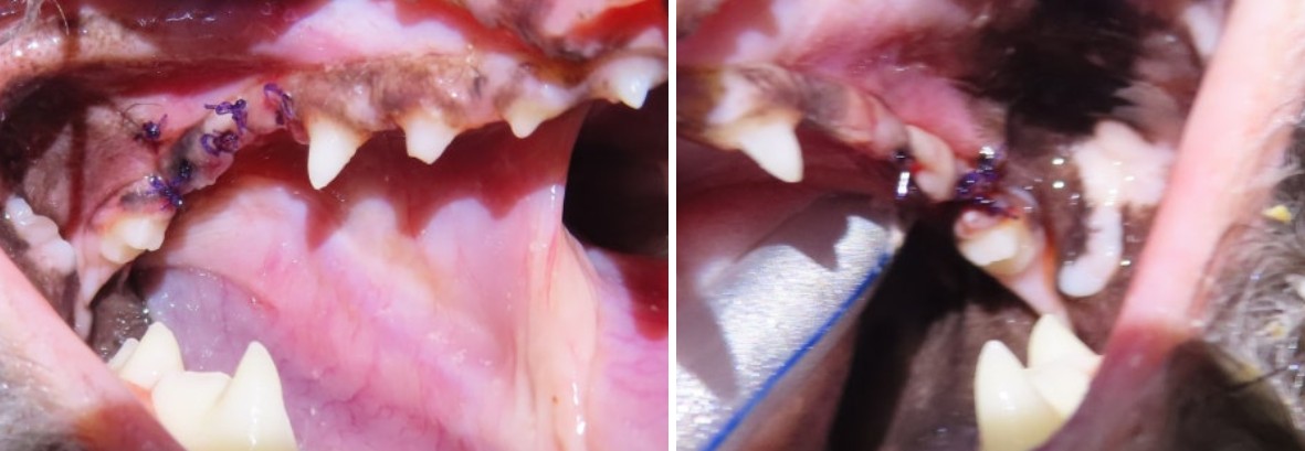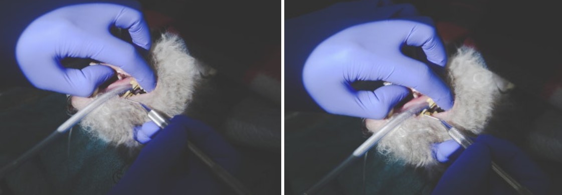 강북구 쌍문동 동물병원 비아츠에서는 양측 상악 M1을 치근 분리 후 단계적으로 제거하는 방식으로 발치를 진행했습니다.