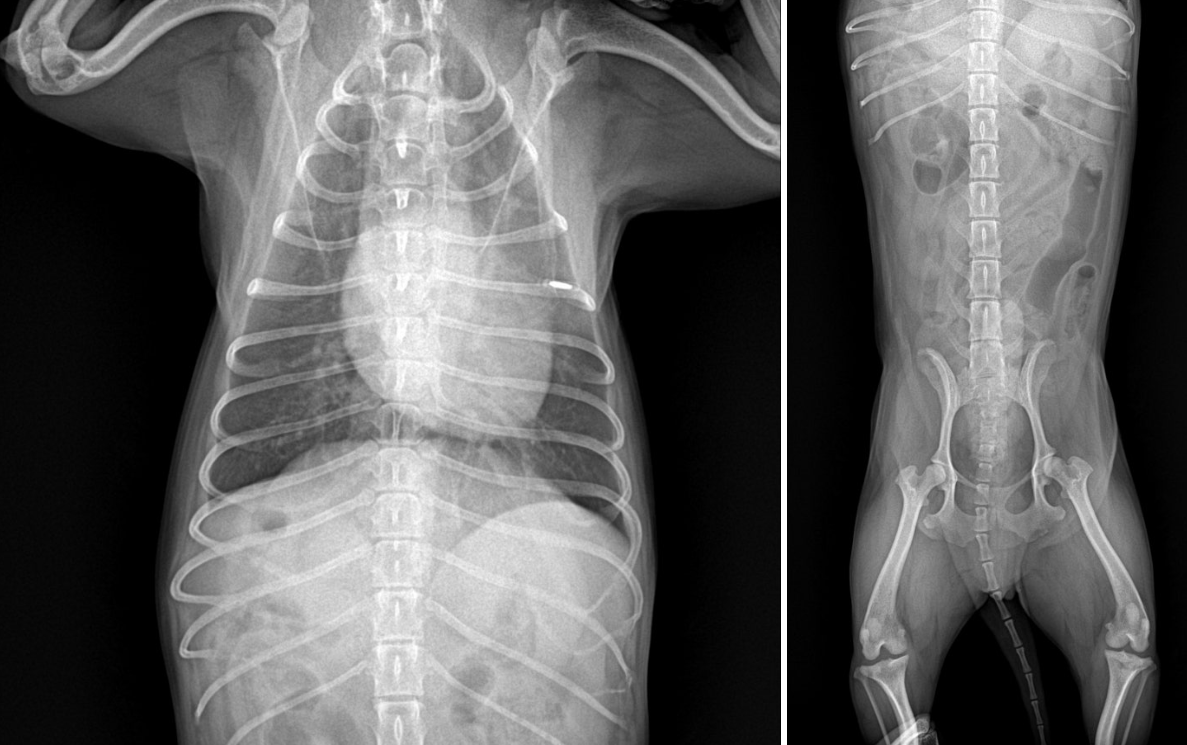 신장 수치, 염증 수치, 전해질 상태를 확인합니다. 요도 폐색이 의심되는 경우 전해질 이상이 동반될 수 있어 반드시 체크합니다.
