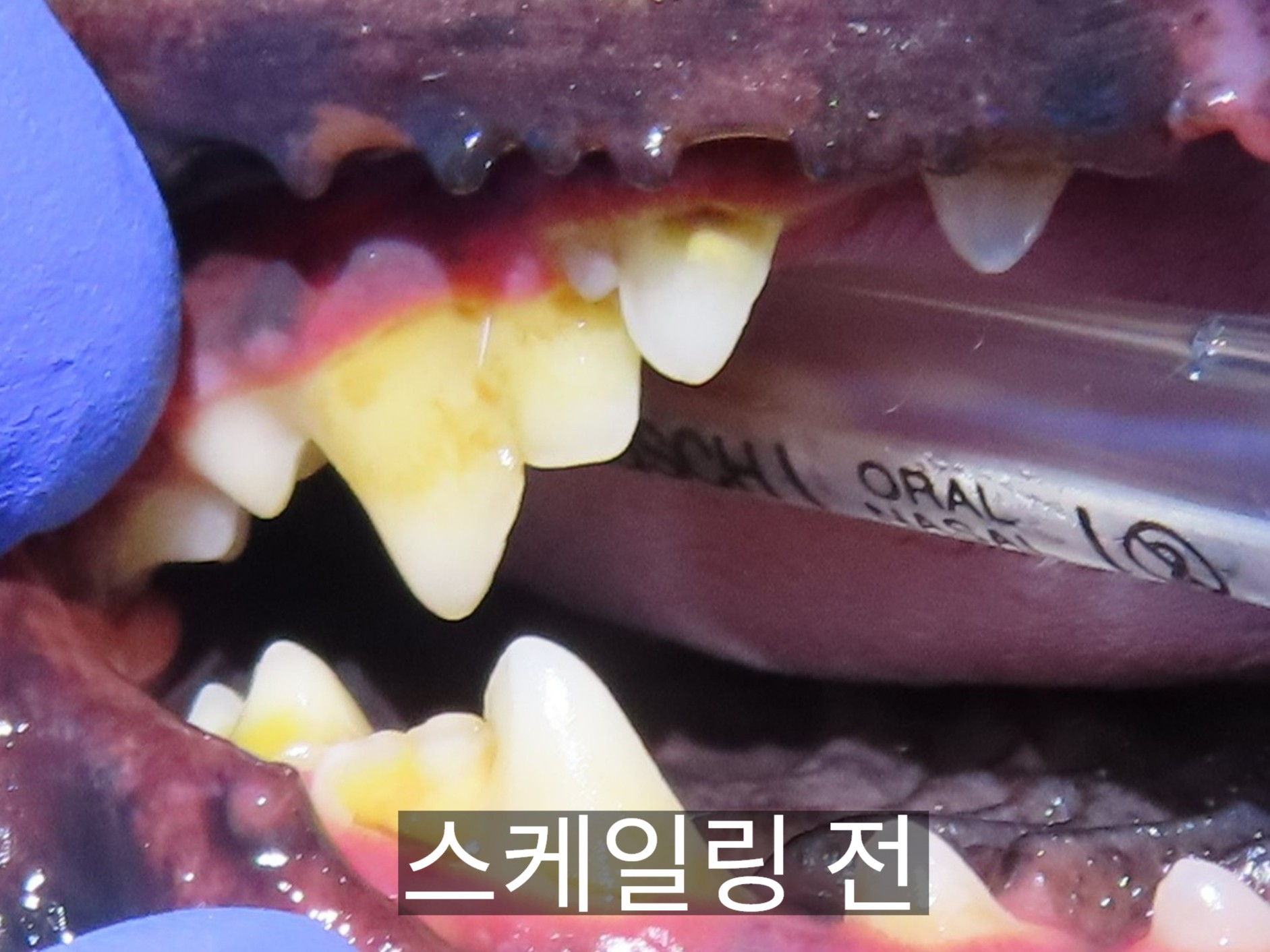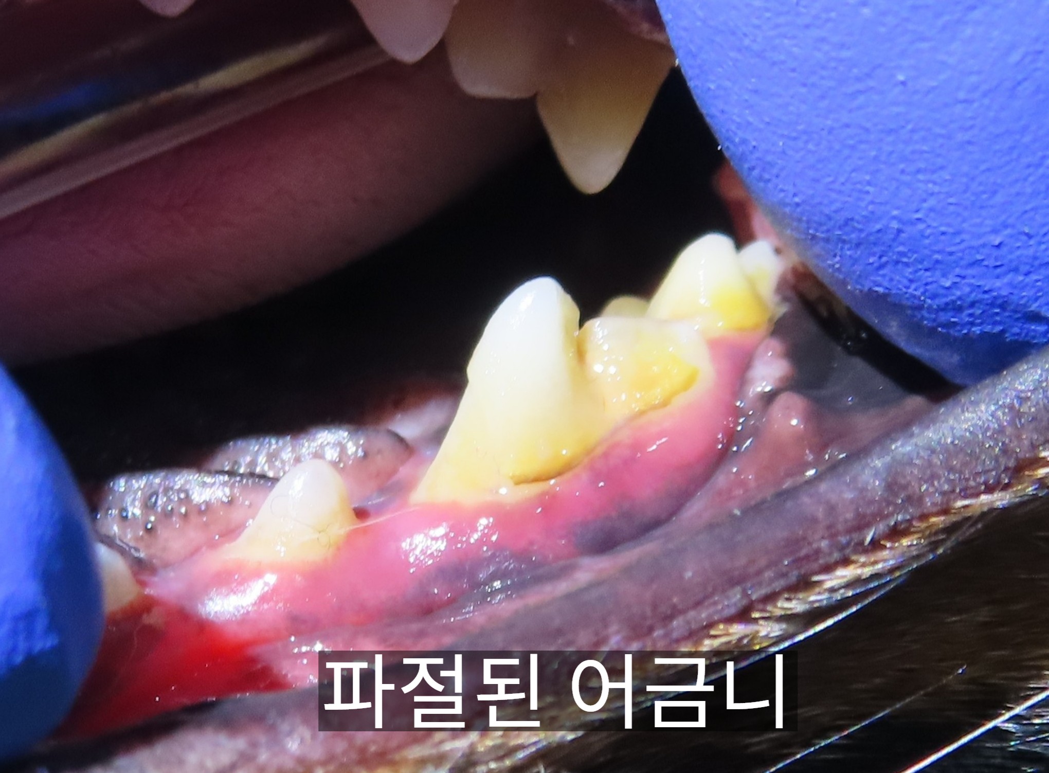 이번 사례 역시 처음엔 치석이 두껍게 붙어 있는 단순한 구강 문제처럼 보였지만, 확대해서 살펴보니 치아 표면이 불규칙하고 금이 간 선이 명확히 보였던 경우였습니다.