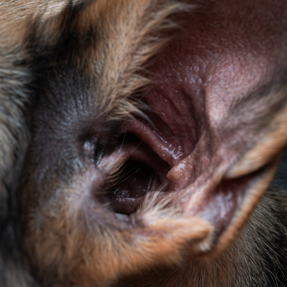 강아지의 귀 피부는 알레르기 반응이 비교적 먼저 나타나는 부위 중 하나입니다.