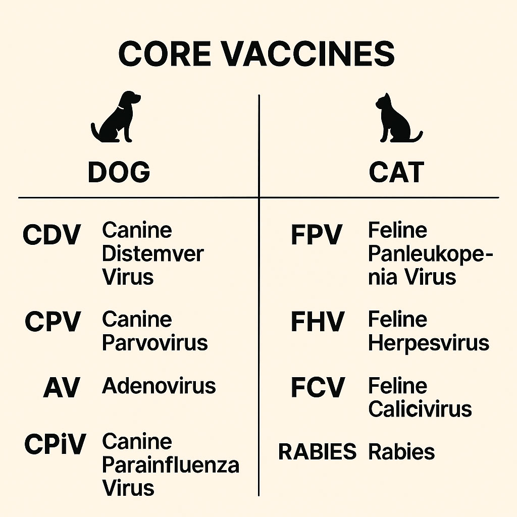 강아지와 고양이는 생후 6–8주 사이에 접종을 시작한다는 점은 같지만, 스케줄 구성과 추가 여부는 두 종 사이에 차이가 있습니다.