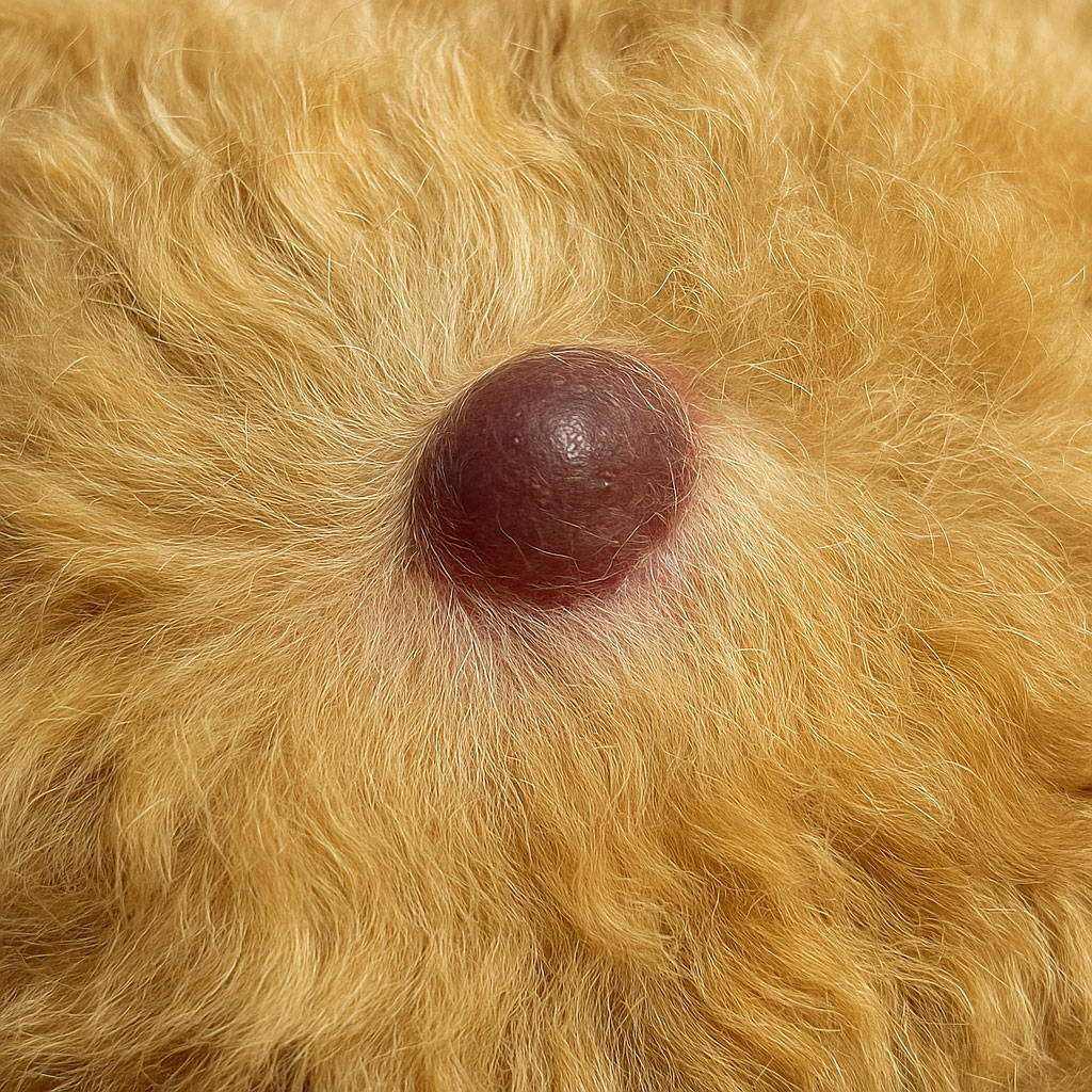 반려동물의 피부는 사람과 달리 한 모공에서 여러 개의 털이 나오는 구조라 피지샘과 아포크린샘이 복잡하게 얽혀 있는데, 이 배출 경로 중 한 곳이 막히면 피지가 점점 쌓이면서 둥근 혹의 형태로 성장하게 됩니다.